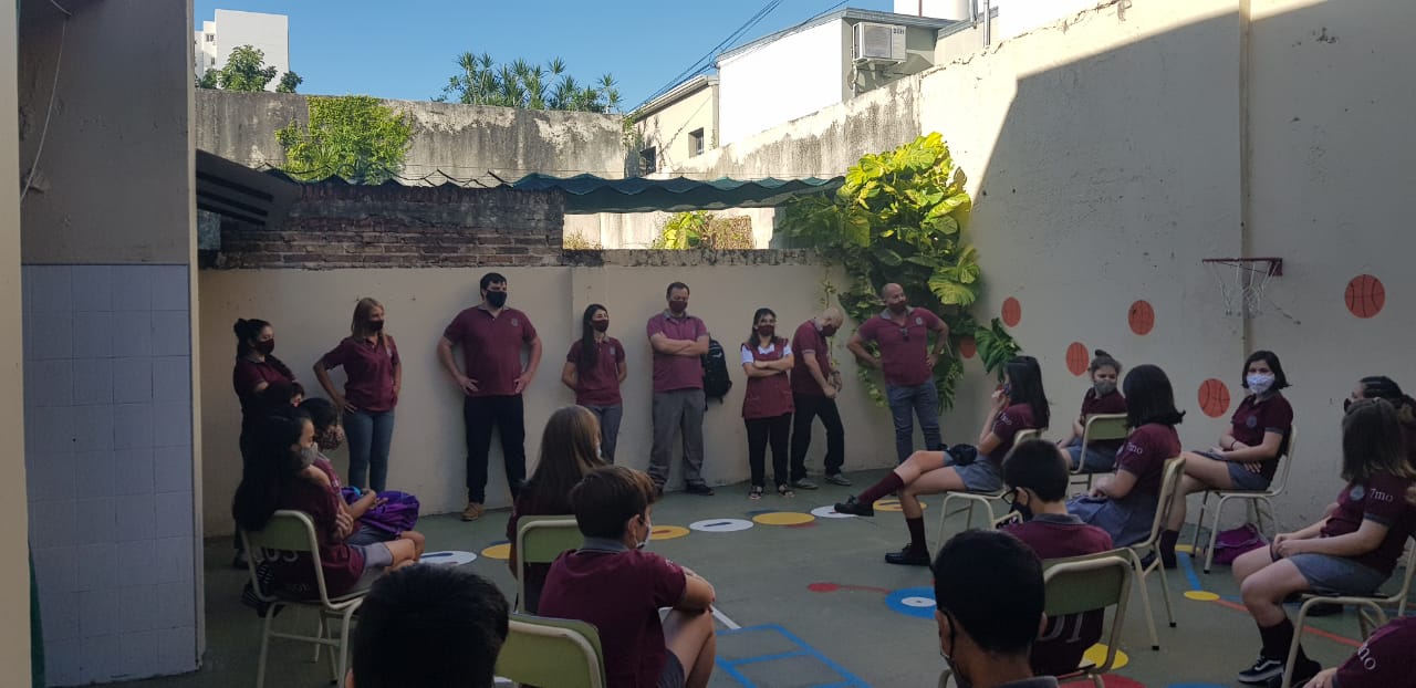 Después de casi un año de trabajar en la virtualidad, de realizar la revinculación con salas de 5, primer grado y séptimo en los meses de diciembre y febrero nos encontramos en nuestra casa, el Complejo Educativo IES.